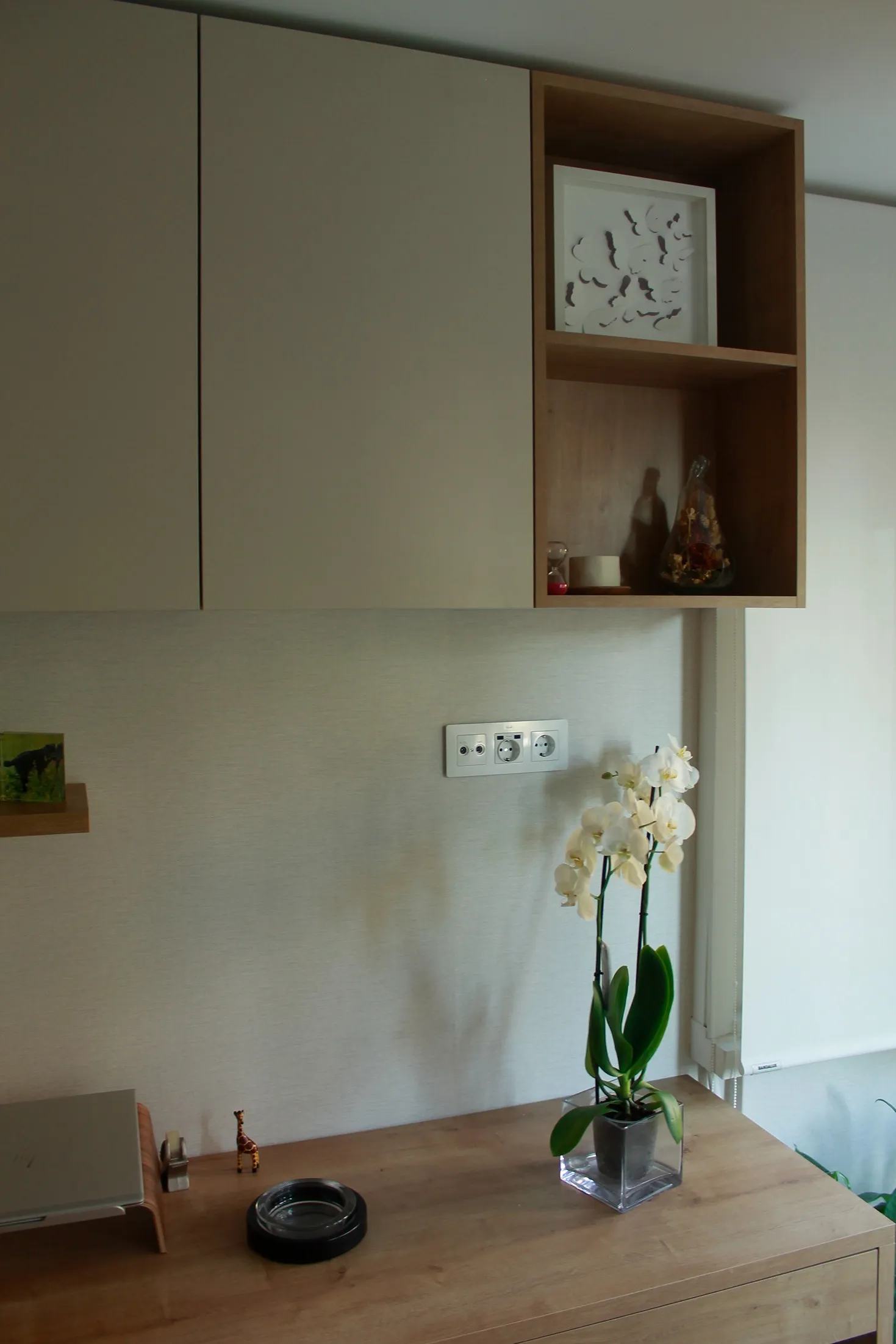 El proyecto lo cerramos con unos estores enrrollables en beige que aportan luz a la vez que intimidad.